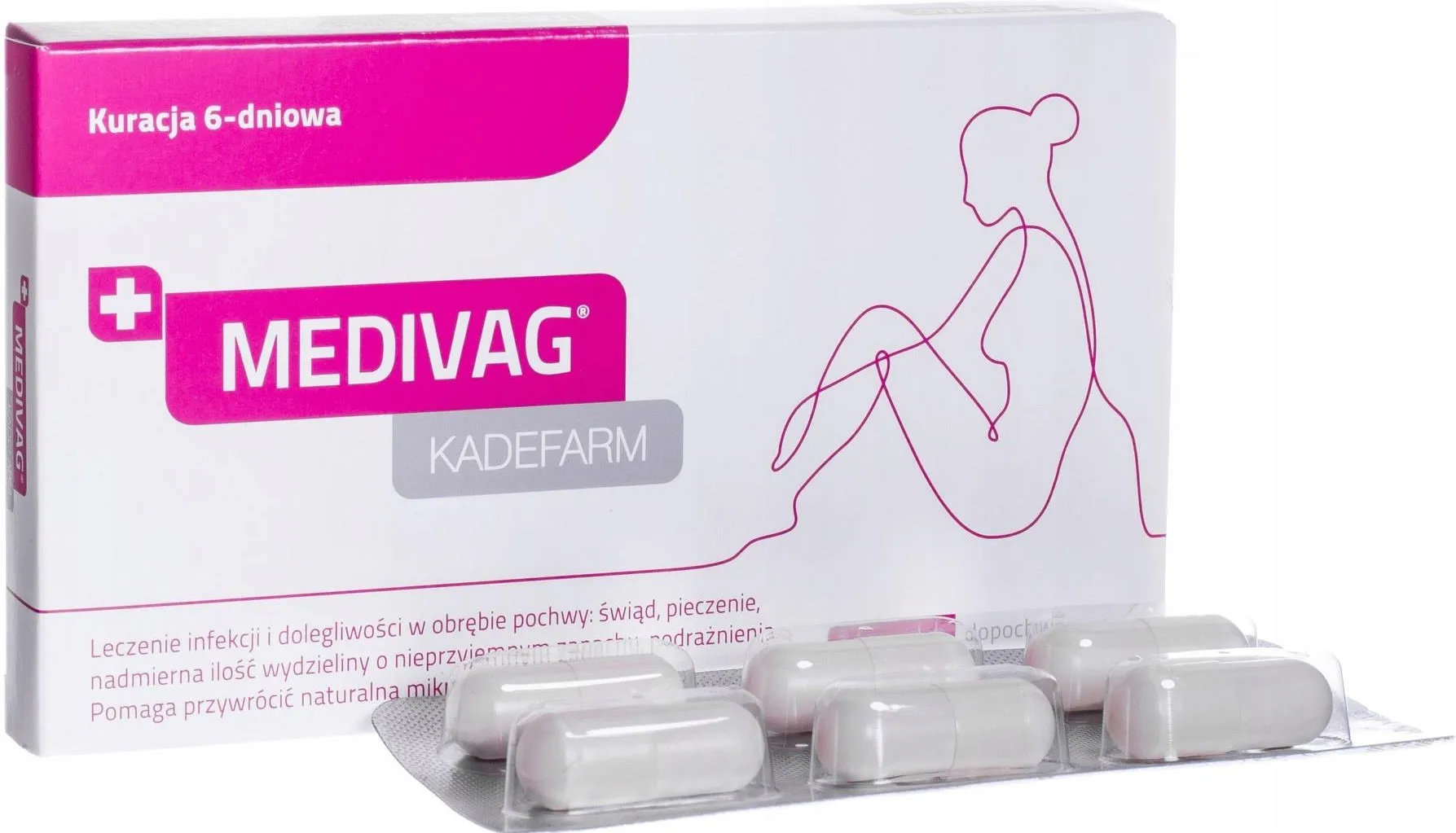 Medivag vaginal, 6 od KADEFARM to produkt stworzony specjalnie z myślą o przywracaniu i utrzymaniu zdrowia intymnego kobiet. Idealnie sprawdza się u kobiet zmagających się z dyskomfortem lub zaburzeniem równowagi flory bakteryjnej.